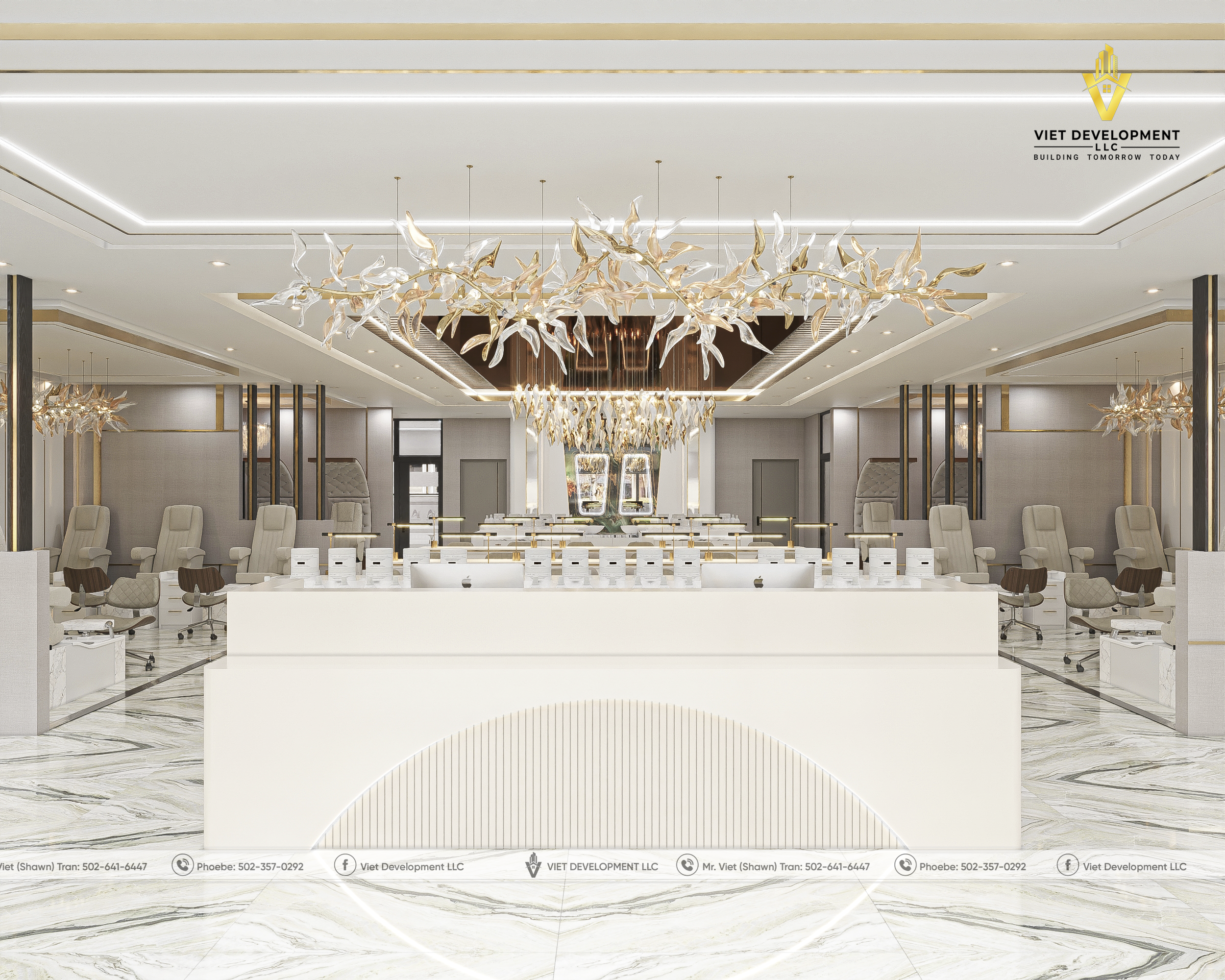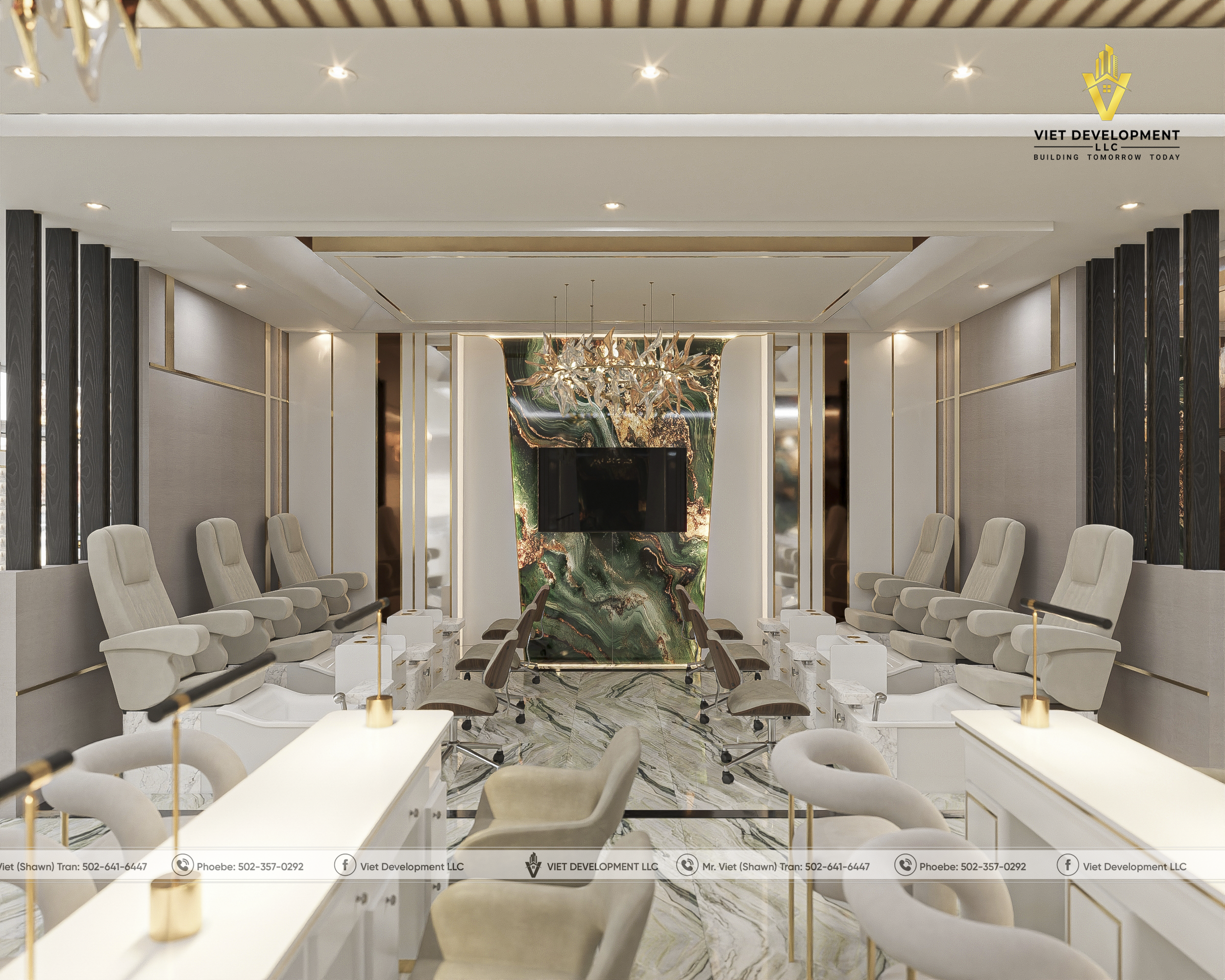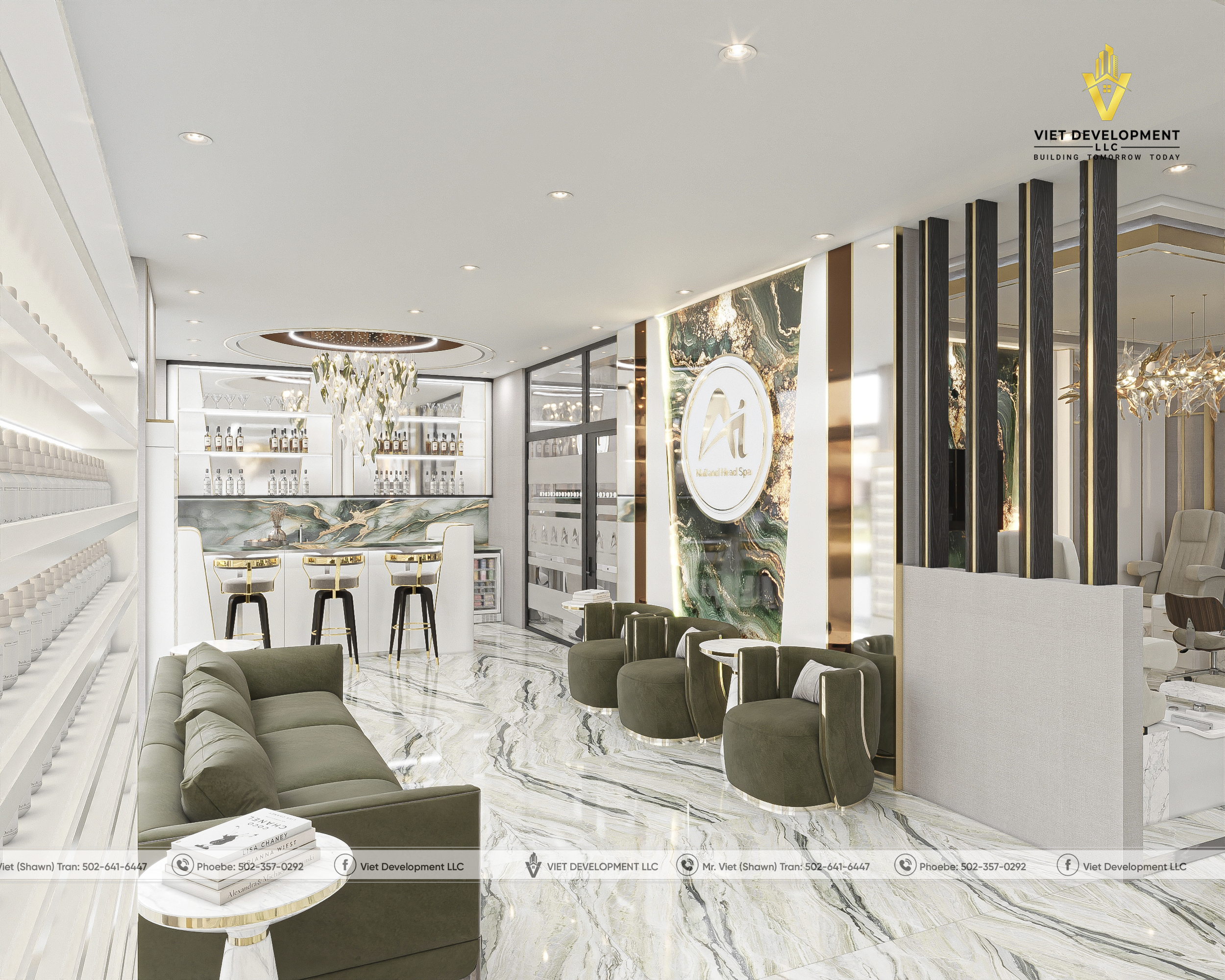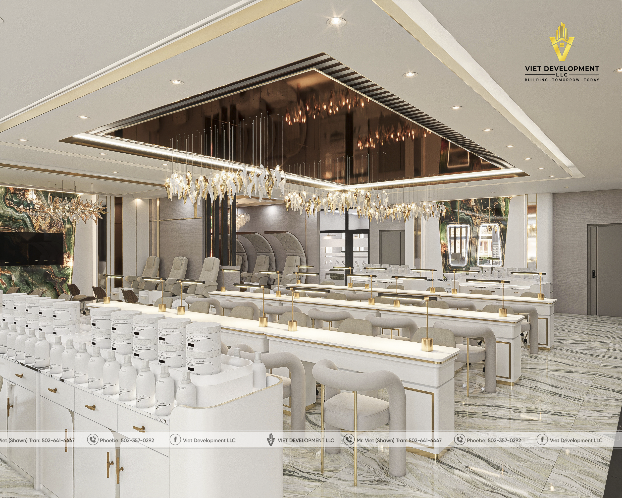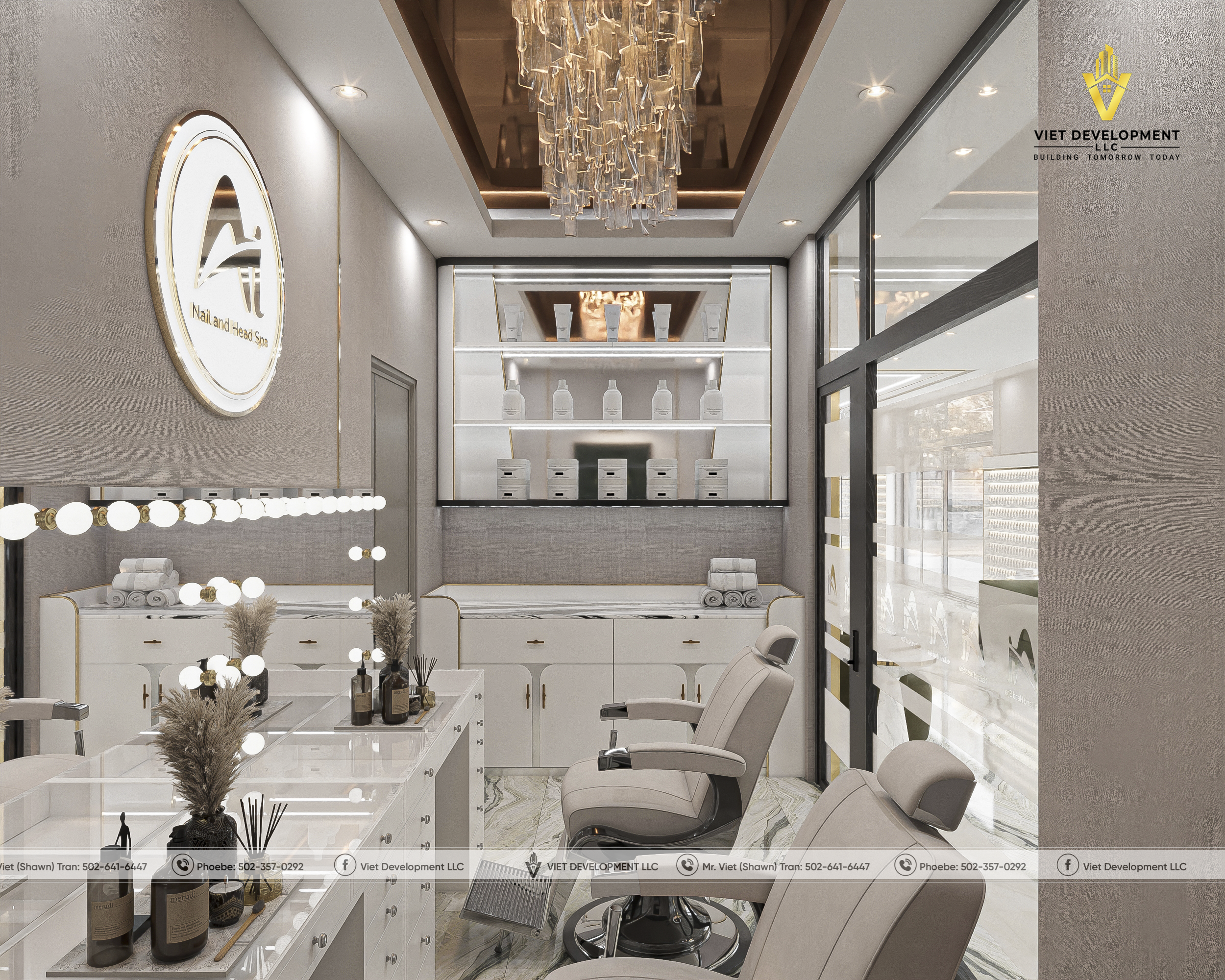 Sau khi hoàn toàn hài lòng với bản thiết kế tiệm AI Nail & Head Spa đầu tiên, khách hàng đã nhanh chóng mở rộng thêm một mặt bằng mới và tiếp tục lựa chọn Viet Development làm đơn vị đồng hành cho dự án thứ hai.