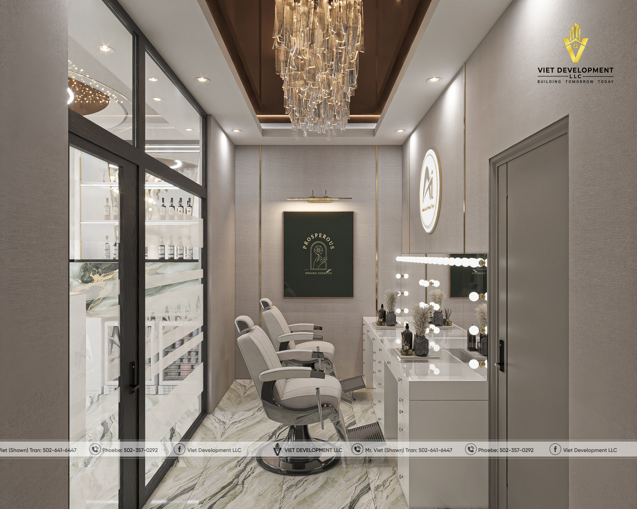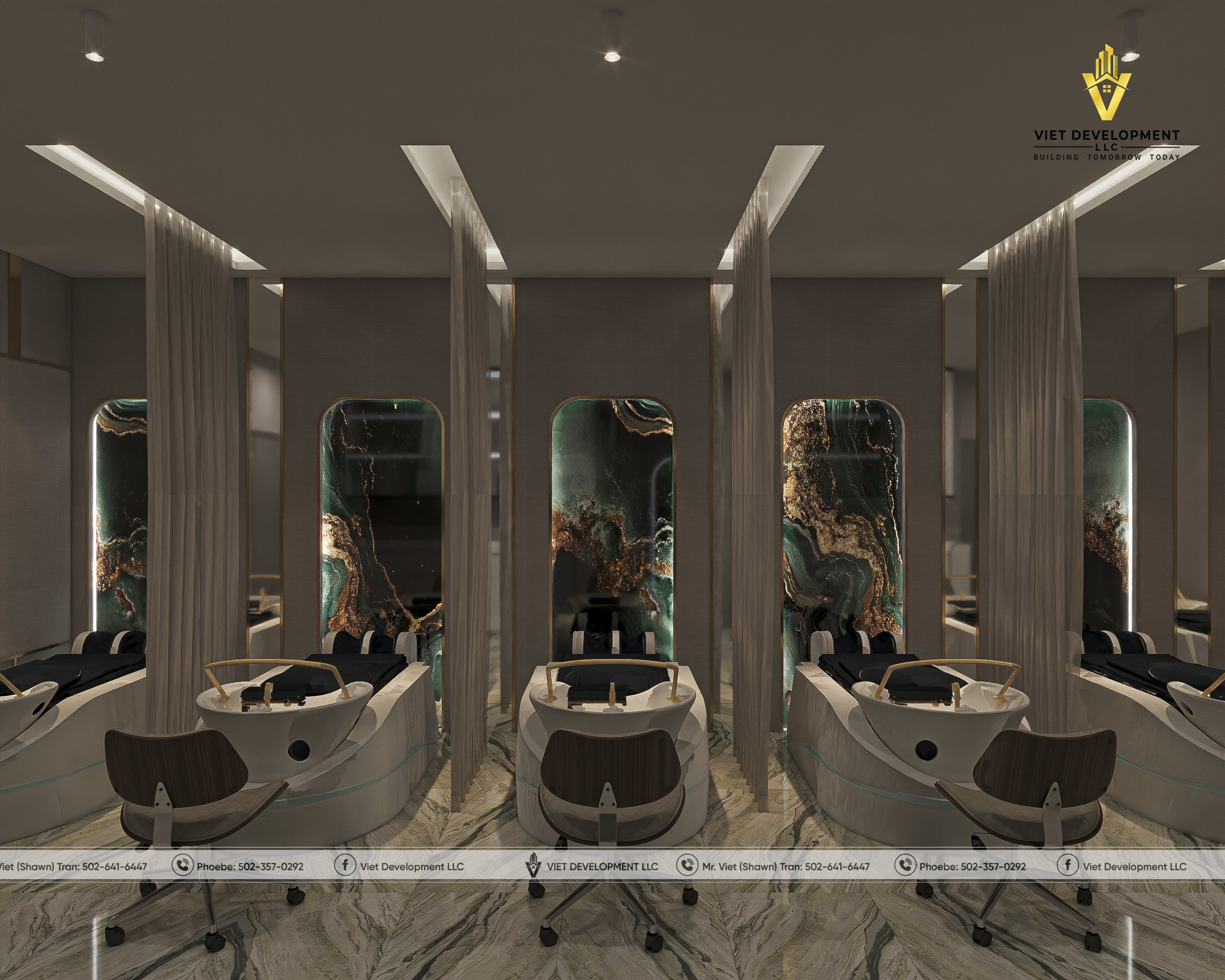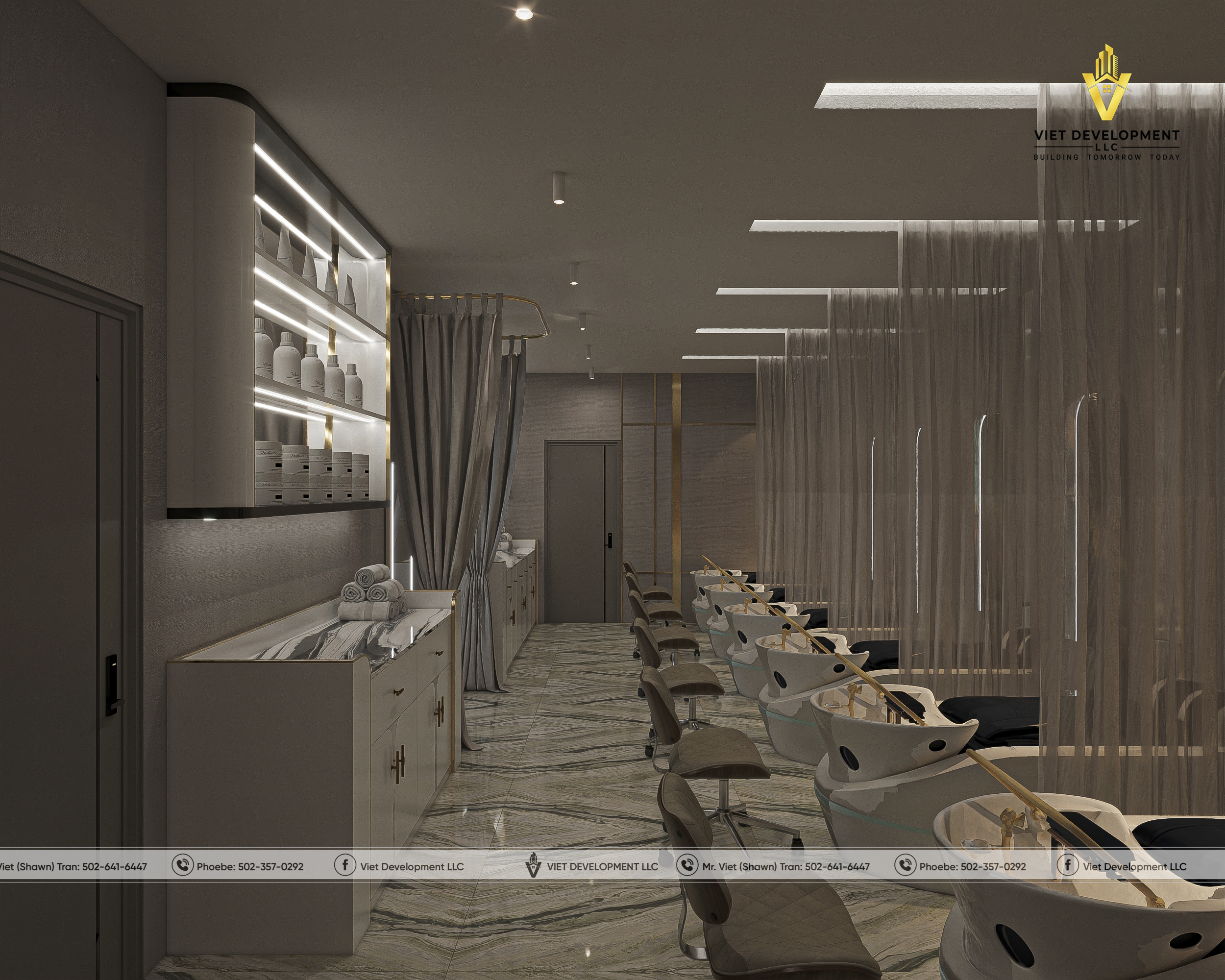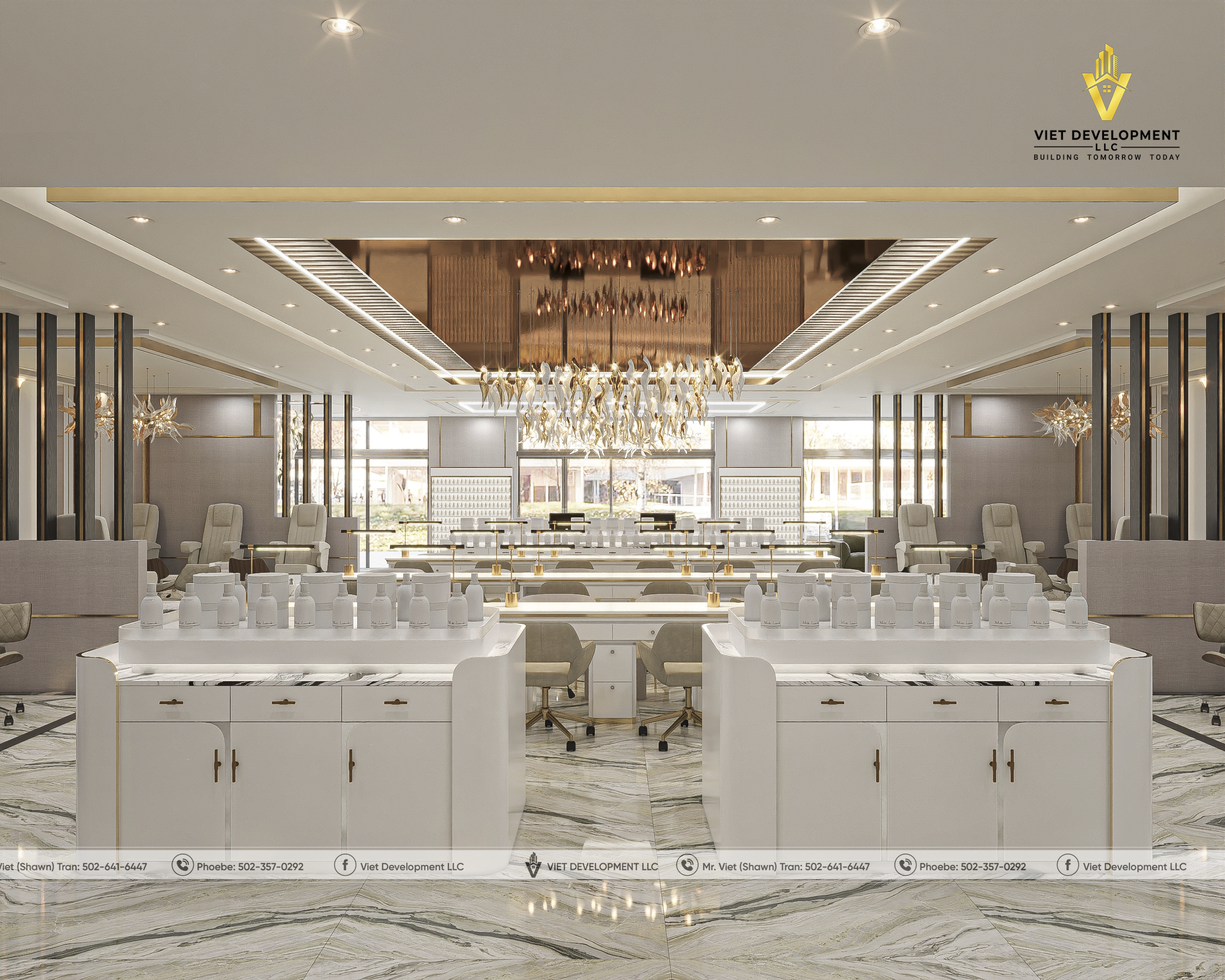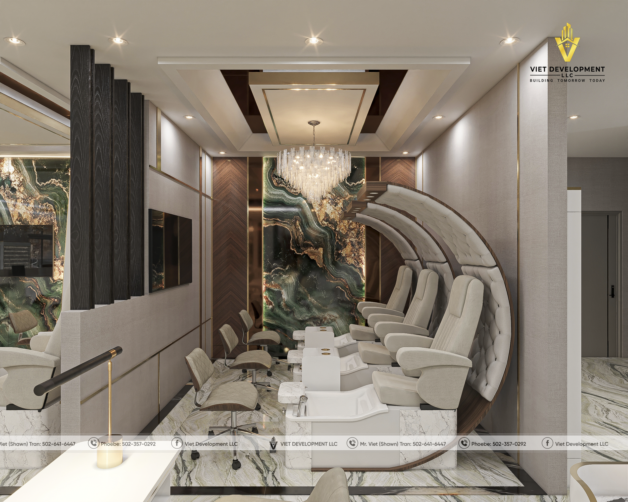 Sau khi hoàn toàn hài lòng với bản thiết kế tiệm AI Nail & Head Spa đầu tiên, khách hàng đã nhanh chóng mở rộng thêm một mặt bằng mới và tiếp tục lựa chọn Viet Development làm đơn vị đồng hành cho dự án thứ hai.
